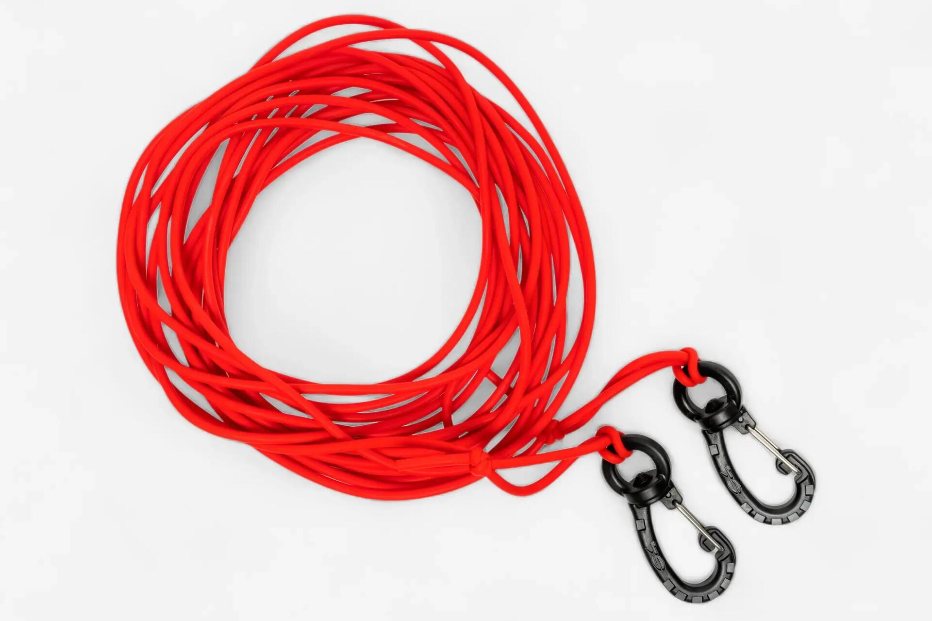 - L'Amortisseur (ou Bungee) : Une section de ligne élastique (caoutchouc) placée entre l'arbalète et le début de la ligne de bouée. Il absorbe le choc du poisson après le tir et réduit la tension sur la ligne et l'équipement.