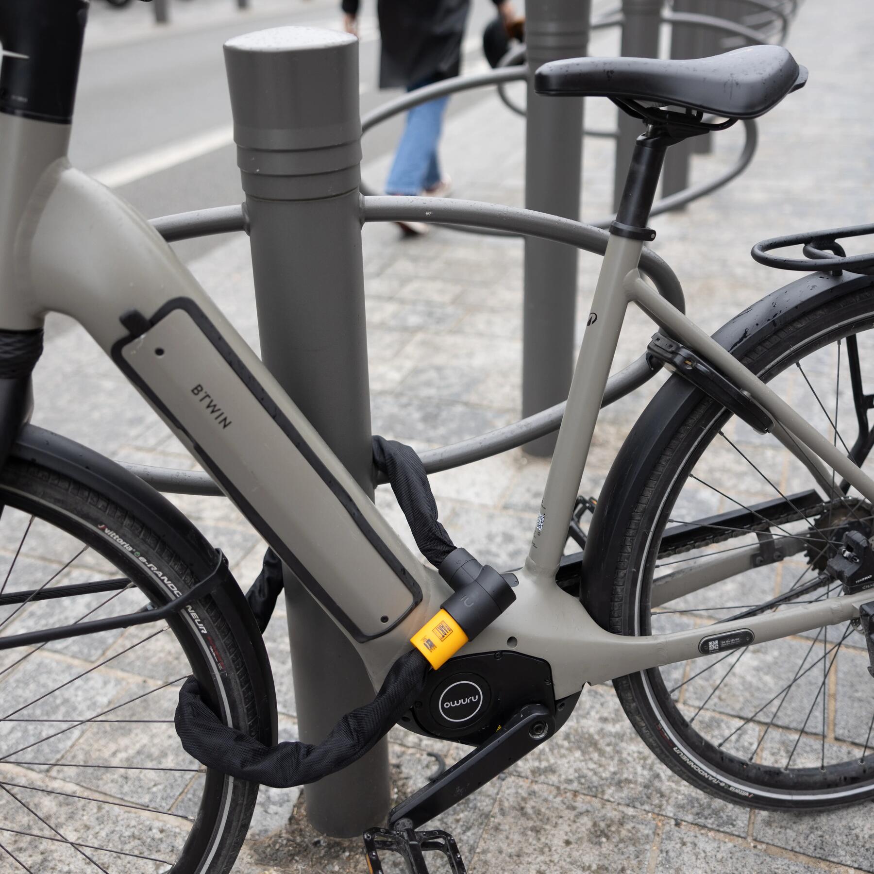 - Accrochez toujours votre vélo sur un support fixe, bien ancré au sol et très solide. Il arrive que certain·es voleur·ses choisissent de briser/couper le support plutôt que l’antivol quand celui-ci s’avère très dissuasif et que le support, au contraire, n’est pas suffisamment solide. Attacher uniquement l’une des roues avec le cadre, sans fixer l’ensemble à un point solide, n’est pas suffisant, pire, ça peut attirer le regard des ravisseur·seuses.