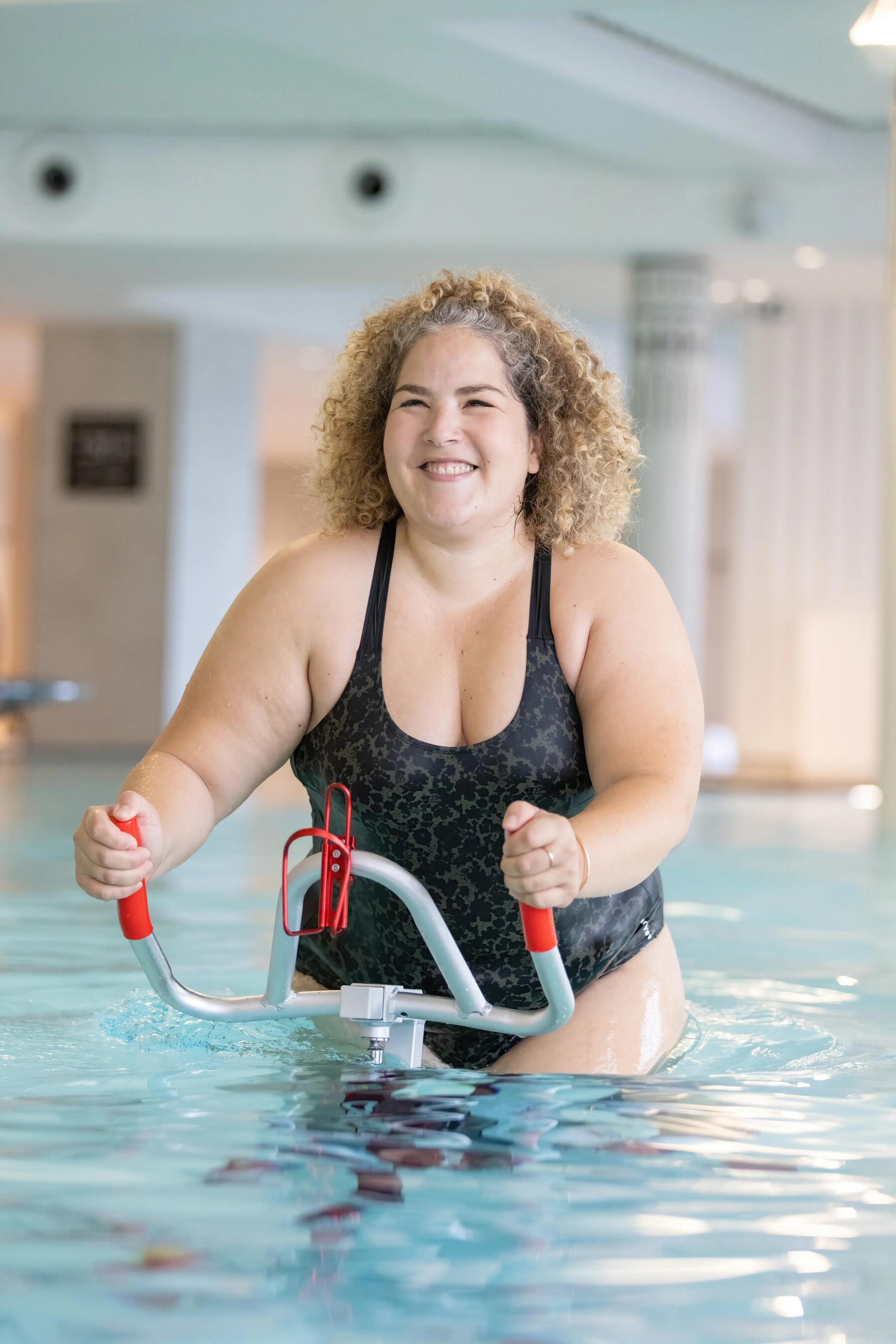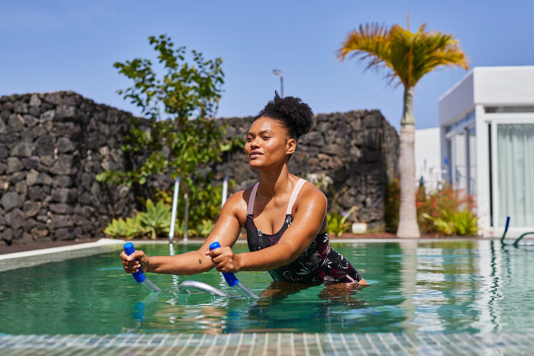 Sport complet combinant les bienfaits de la natation et ceux du vélo, l’aquabike vous permet de pratiquer une activité ludique pour raffermir votre corps et améliorer vos compétences de cardio, tout en épargnant vos articulations de traumatismes importants. En effet, l’eau permet d’amortir vos mouvements de façon efficace et ainsi de limiter l’impact de vos efforts.