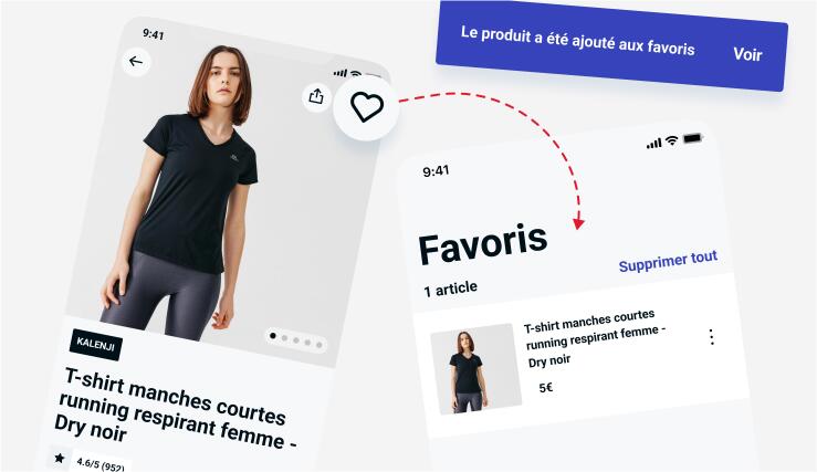Ajoutez vos produits préférés dans vos “favoris” sur l’application Decathlon Shopping pour les retrouver facilement et faites-vous plaisir !