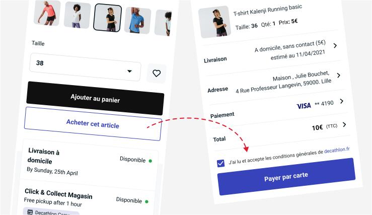Validez votre panier sur l’application Decathlon Shopping, choisissez votre mode de livraison et suivez votre commande, c’est simple et rapide !