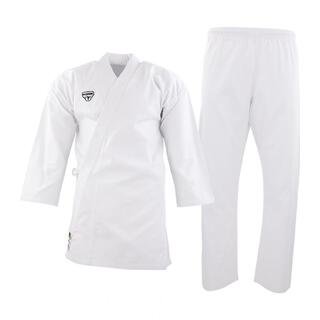 La 180 è una IV, ideale per chi è alto da 175 a 185. Cintura presente ma corta (ho una 46 di pantaloni, ma dopo aver fatto il nodo rimanto i due "baffi" davvero corti). Io sono alto 173 e sono in forma ed il GI è un pelino comodo. Il tessuto è leggero e morbido, forse un po' troppo sottile per chi è abituato ai karategi leggeri da allenamento