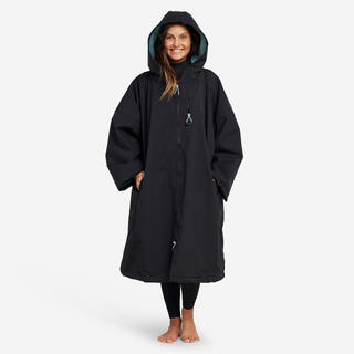Super poncho, bien chaud et efficace pour se réchauffer en sortant de l'eau froide. Il est doux et agréable à porter. Il faudrait juste des ouvertures pour pouvoir se changer comme avec les ponchos d'été. Il faudrait prévoir 2 ou 3 tailles pour éviter que le Poncho touche le sol pour les petites personnes.